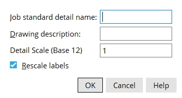 Detail description: The description (up to 22 characters) you want to appear as the Material description in the Drawing Data Panel for the job standard detail you are creating.