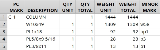 Warning: The Quantity reported here may not be up to date if the detail is not up to date. Process and Create Solids automatically marks members for detailing when their quantity changes. Submaterials are automatically marked for detailing when their quantity changes only if