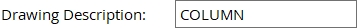 Drawing description: Any text string that describes your current drawing. The entry made here appears on the callout on a member detail and is the Description in the member bill of material. In the example below, the Drawing description is COLUMN.