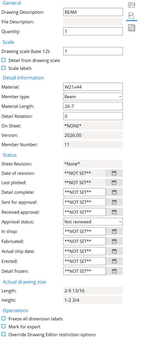 **NOT SET** removes Detail complete from your current member detail, submaterial detail, erection view, or sheet. This allows you to detail the drawing or Save changes to that drawing without having to override the detail complete date.