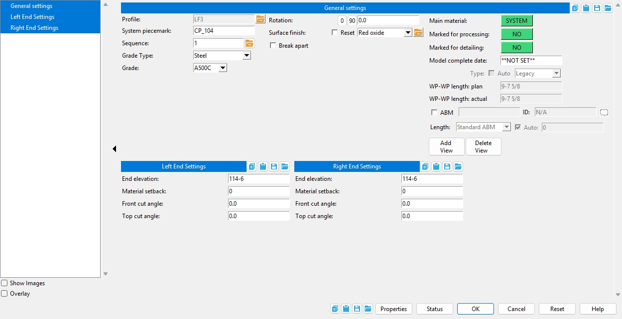 Grade: Sets the grade of the member's main material. The grades available are determined by the selected Grade Type.