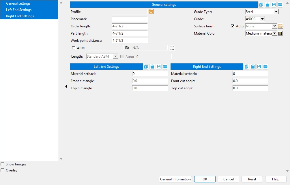 Grade: Sets the grade of the member's main material. The grades available are determined by the selected Grade Type.