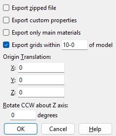 Origin translation: 0 or a +/- distance. Use this setting to shift the coordinates of every member by a specific distance in X, Y, and/or Z in the exported file.