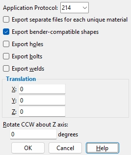 Application protocol: 203 or 214 or 242 . 203 outputs a file that conforms to AP203, which is the more basic protocol. 214 conforms to AP214, which includes most everything in AP203 but adds colors. 242 combines the capabilities of AP203 and AP214. Most software that can import STEP models can accept any of these formats. AP242 is the most recently developed protocol, and it may be required by newer software.