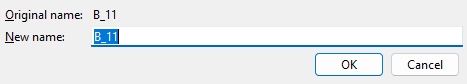 5. A Rename Project Items window opens for each of the files you selected in step 4. The Original name identifies the item selected in step 4. The New name is the name you want to give to the item, select the Enter key or the OK button.